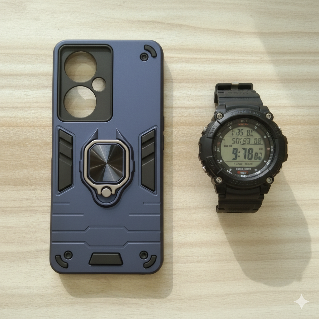 Keep your OnePlus Nord CE 3 safe and stylish with this Rugged Armor Shockproof Case, engineered for maximum protection and a premium look. Designed with a dual-layer hybrid build (TPU + hard PC), it guards your device against drops, scratches, and daily wear. The metallic ring holder at the back offers a strong grip and doubles as a 360° stand, while the magnetic plate supports car mount use.