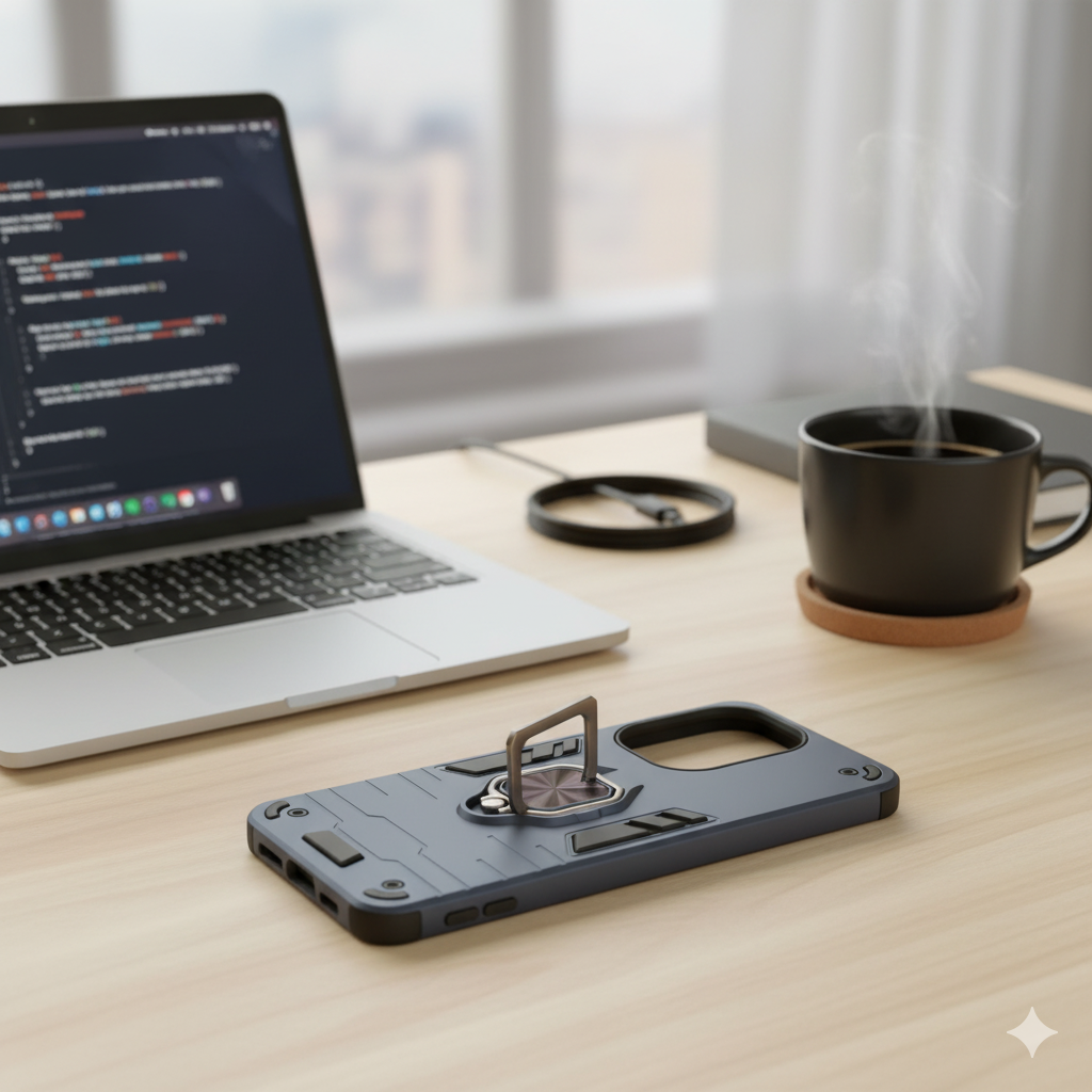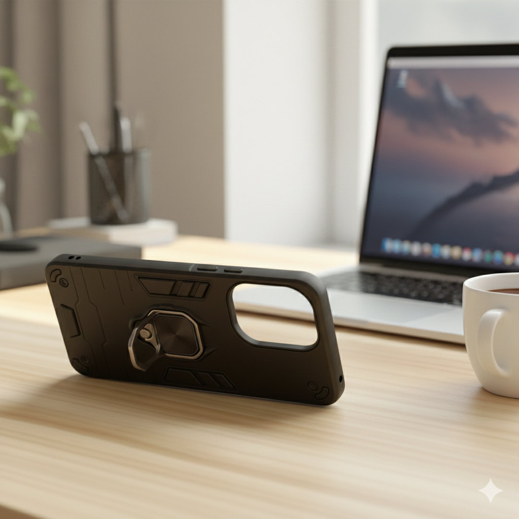 Give your Redmi 13C the ultimate protection with this Rugged Armor Magnetic Ring Case — built for strength, style, and functionality. Designed with a dual-layer shockproof body, it ensures full protection from drops, scratches, and daily wear. The metallic ring stand provides a firm grip, works as a 360° kickstand, and supports magnetic car mounts for hands-free use.Crafted with premium matte finish and precise cutouts, it offers perfect alignment for your camera, buttons, and ports — delivering both durability and elegance. The military-grade corners enhance safety, while the anti-slip texture ensures a secure hold at all times.Key Features: