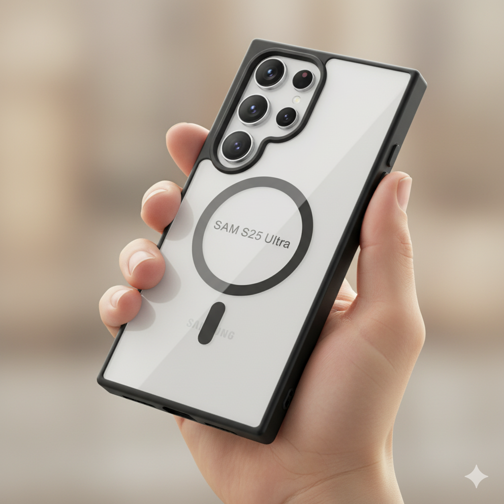 Samsung Galaxy S25 Ultra Clear MagSafe Back Cover – Transparent Shockproof Protective Case (Black | Blue | Brown)