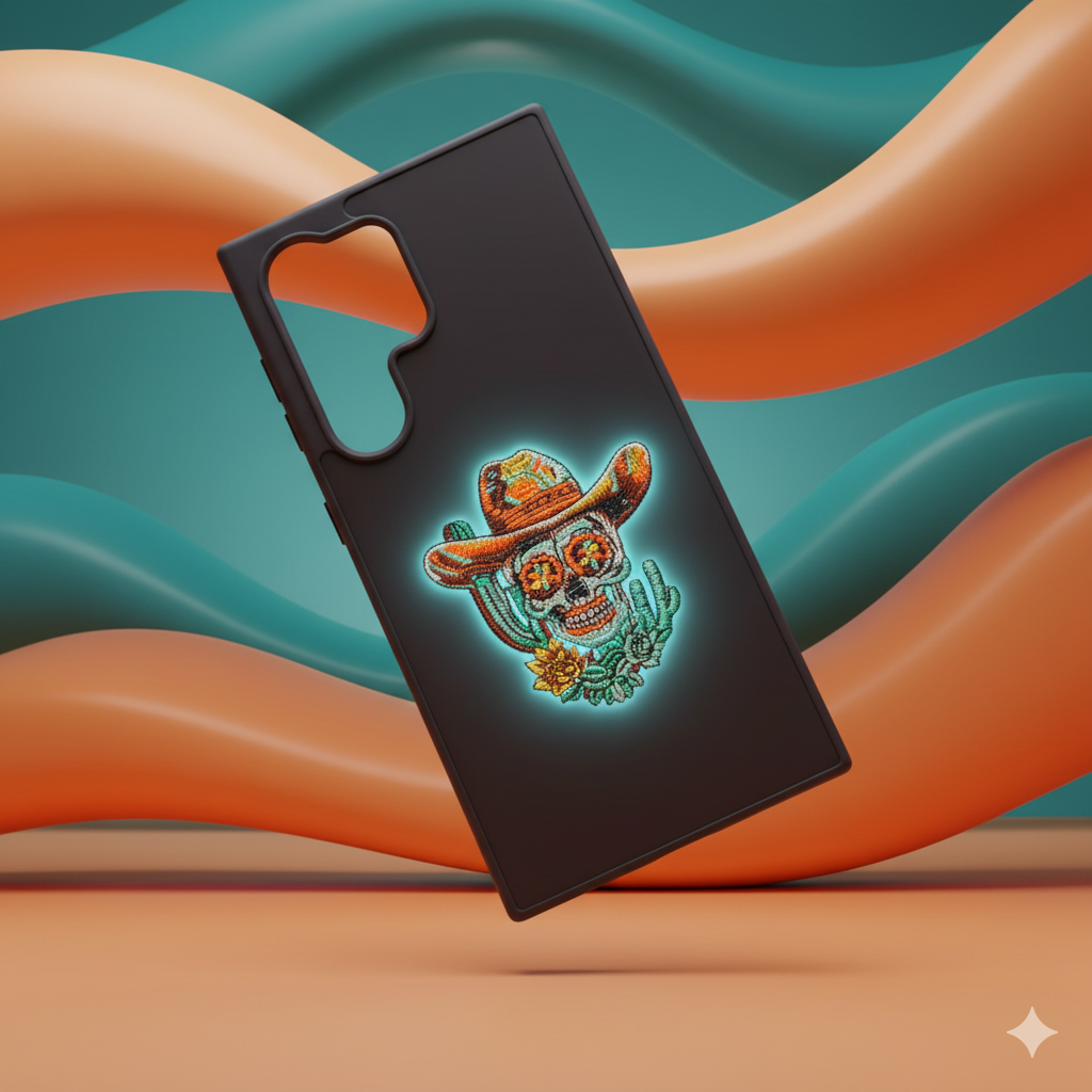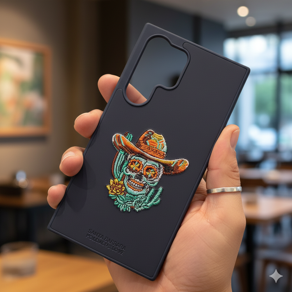 Give your Samsung S25 Ultra a bold and artistic edge with this premium embroidered cowboy skull back cover. Designed with intricate stitching and vibrant thread colors, this case combines rugged Western charm with luxury craftsmanship. The premium leather-textured finish enhances your grip while offering complete protection against scratches, drops, and daily wear. A perfect blend of art and protection for those who love to stand out.
